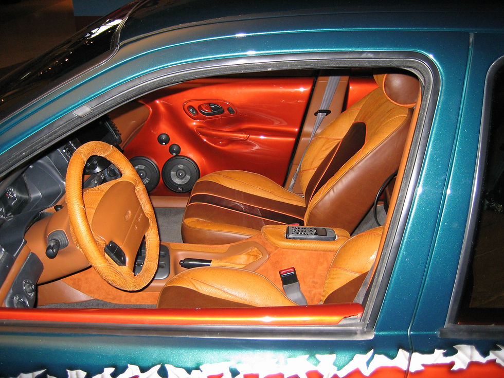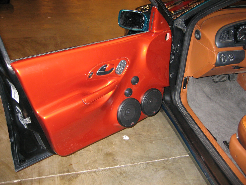 The Ford Contour build where a bear had supposedly attacked her car. I was responsible for all the glass work and audio in the car. This car also had a motorized bed that came out of the trunk for camping.